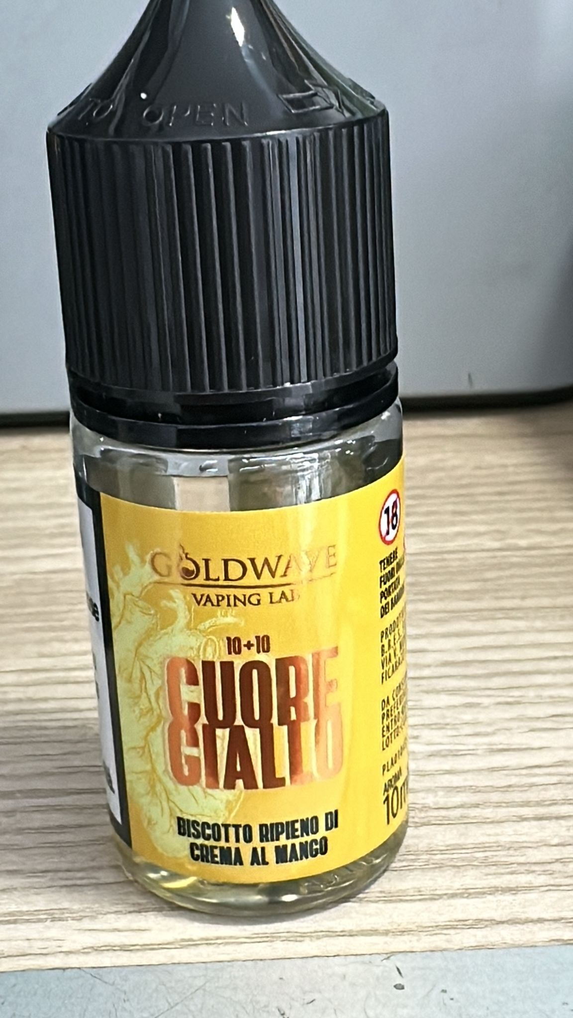 Liquidi aromi per sigaretta elettronica di alta qualità marca Goldwave CUORE GIALLO BISCOTTO RIPIENO CREMA AL MANGO 10+10